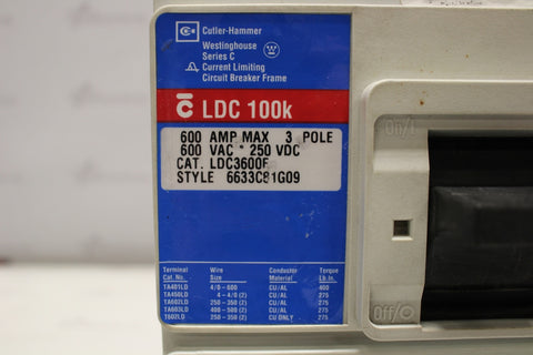 Cutler Hammer LDC3600F Molded Case Circuit Breaker 600 Amp 600VAC/250VDC Volt