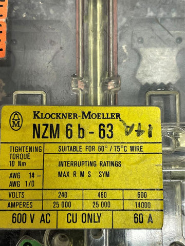 Description: NZM6b-63 Molded Case Circuit Breaker 15 Amp 600 Volt