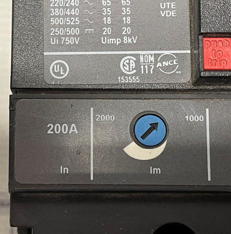 Description: JG250 Molded Case Circuit Breaker 200 Amp 600 Volt