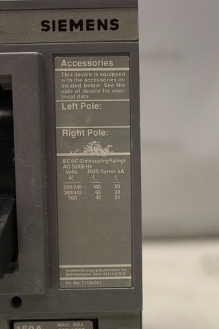 Description: HFD63F250 Molded Case Circuit Breaker 150 Amp Trip 600 Volt