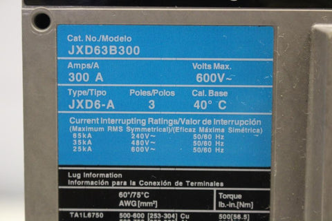 Description: JXD63B300 Molded Case Circuit Breaker 300 Amp 600 Volt