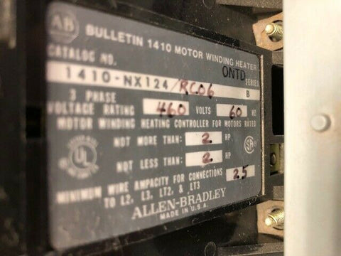 Description:ALLEN BRADLEY 1410-NX124/RC06 MOTOR WINDING HEATER 2HP 460V 60HZ