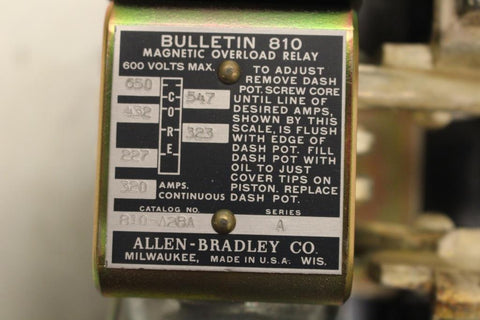 Description:ALLEN BRADLEY 810-A28A MAGNETIC OVERLOAD RELAY 320 AMP CONTINUOUS
