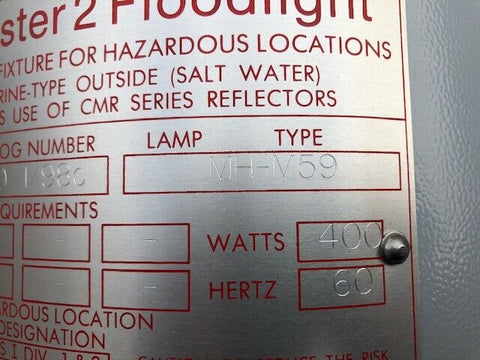 Description:APPLETON CFH400 480V EXPLOSION PROOF 400WATT METAL HALIDE FIXTURE CODE MASTER 2