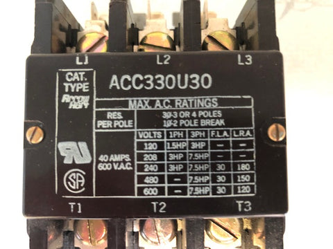 ARROW HART ACC330UM30 MAGNETIC CONTACTOR 3 POLE 30 AMP 208-240VAC COIL