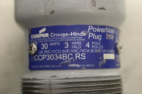 CROUSE HINDS CCP3034BCRS 3P4W 30AMP 600V MALE CORD END POWERMATE PLUG REVERSE SERVICE