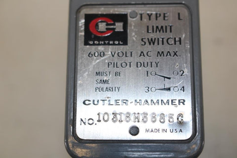 Description:CUTLER HAMMER 10316H5685C LIMIT SWITCH TYPE L