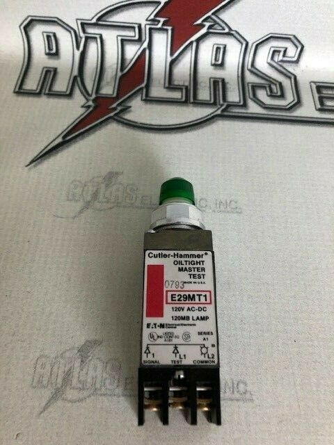Description:CUTLER HAMMER E29MT1 INDIC LIGHT GREEN 17MM HEAVY DUTY 120VAC/DC MASTER TEST