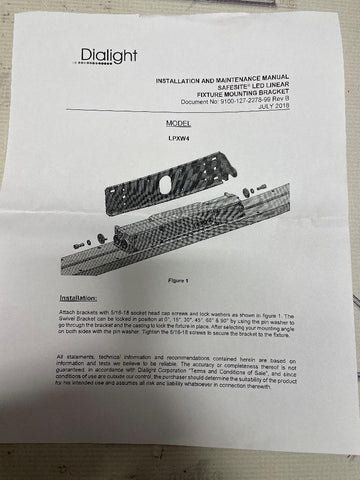 Description: Dialight Corporation LPX-W4 Mount Kit Stainless Steel Ceiling/Flat Fixture Mounting Bracket Safesite LED Linear