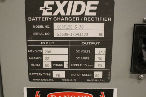 Exide Battery Charger/Rectifier SCRF130-3-30 130VDC 60 Cell