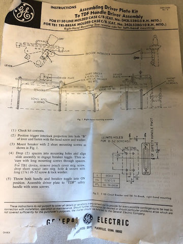 Description:GE TDF-10 COMPLETE TDF SAFETY HANDLE FOR ANY E150 LINE CIRCUIT BREAKER
