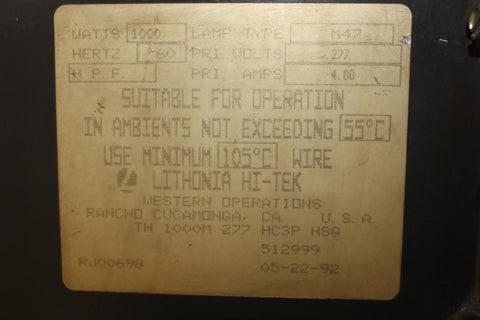 Description:LITHONIA TH1000M-277-HC3P-HSG 1000 WATT METAL HALIDE HIGH BAY WITH REFLECTOR