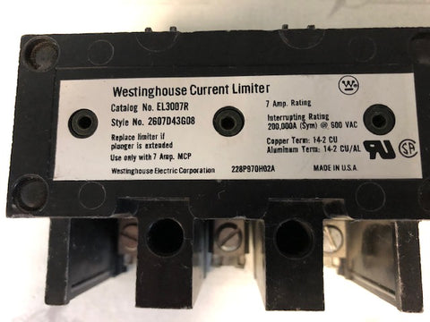 WESTINGHOUSE EL3007R CURRENT LIMITER 7AMP 600VAC