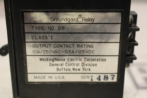 WESTINGHOUSE NO. GR STYLE 3512C12H01 GROUNDGARD RELAY 4-12 AMP TRIP CURRENT